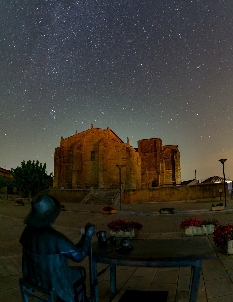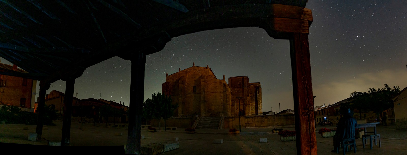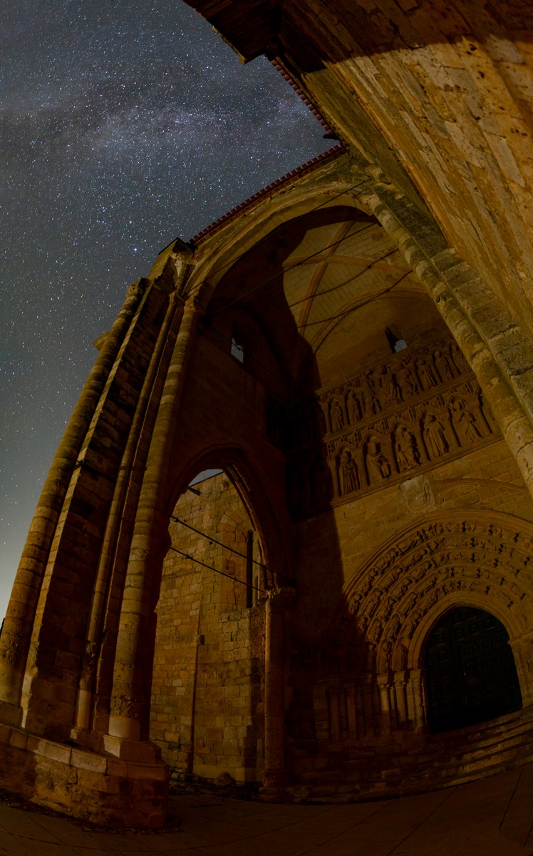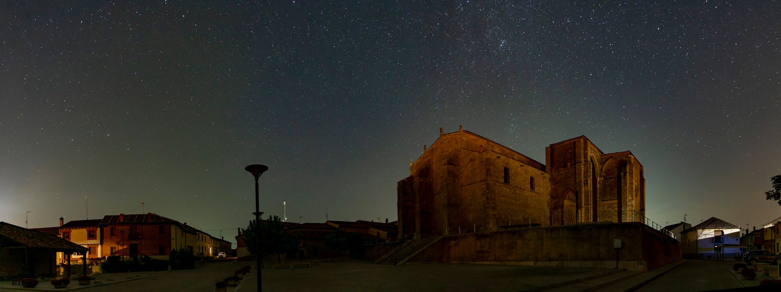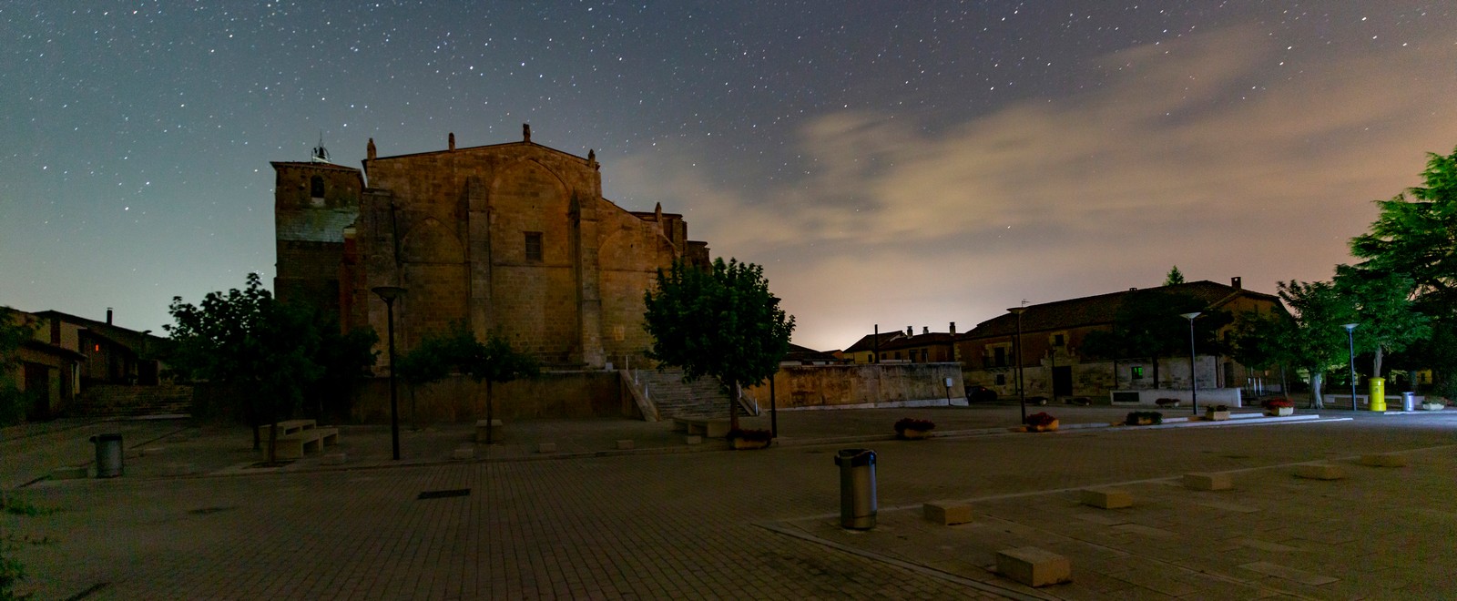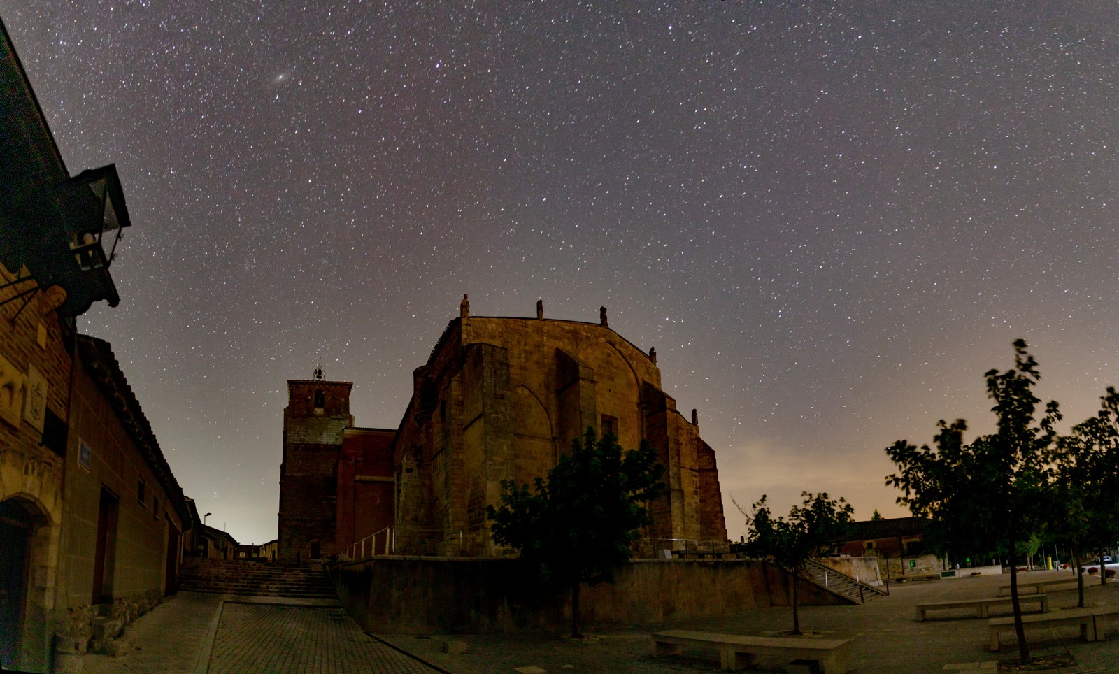 La monumental Iglesia de Santa María la Blanca, vinculada a la Orden del Temple, se alza majestuosa bajo un cielo que realza su grandeza.
